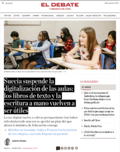 “Suecia ha decidido dejar en suspenso la estrategia de digitalización de las aulas que el pasado mes de diciembre había aprobado la Agencia Nacional de Educación. El país, que en la actualidad ostenta la novena posición en comprensión lectora del informe PIRLS, ha optado por tirar de freno en lugar de acelerar tras un arduo debate en torno al tema.”